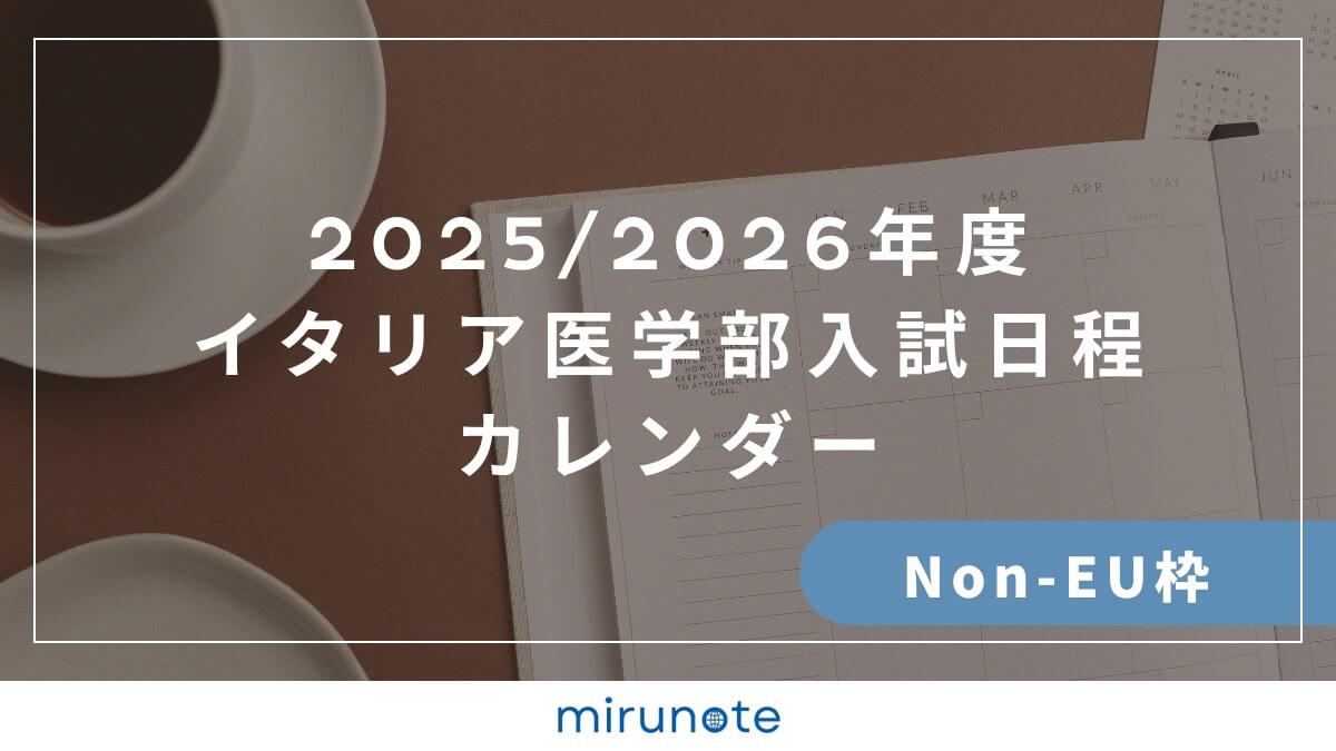 mirunote留学では、2025年度イタリア私立医学部入試Non-EU枠の出願・入試から合格発表・一次金納付締め切りまでの日程を大学ごとに、わかりやすく表にまとめました。